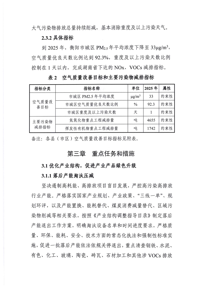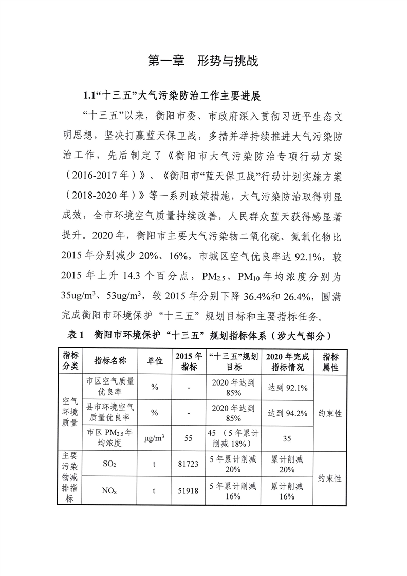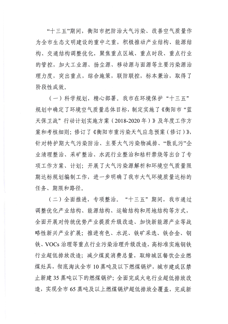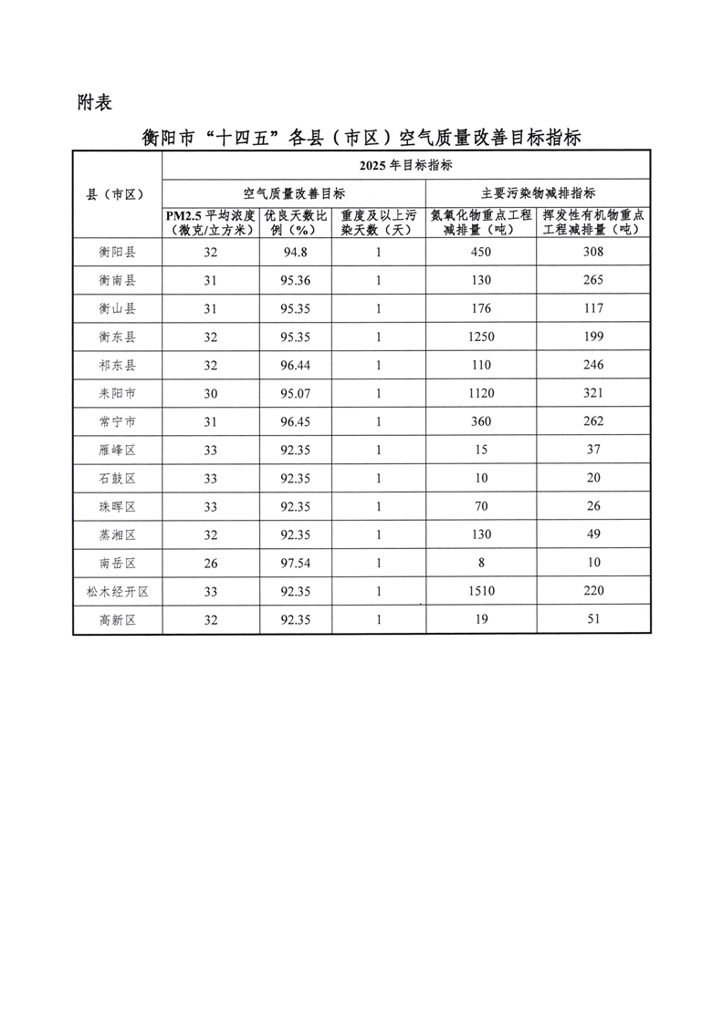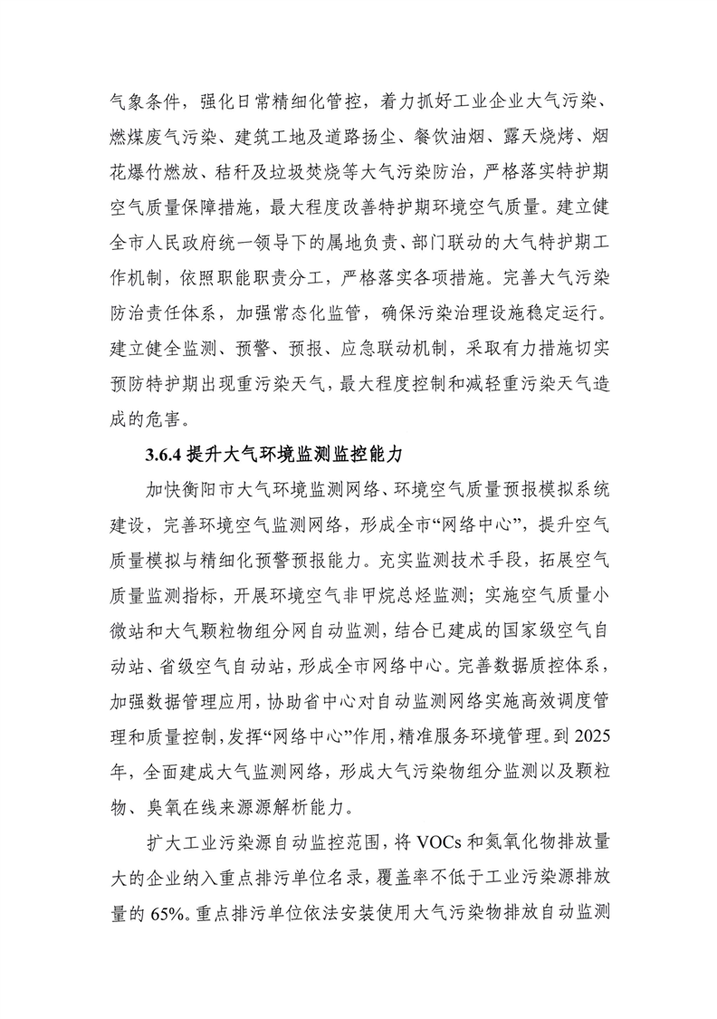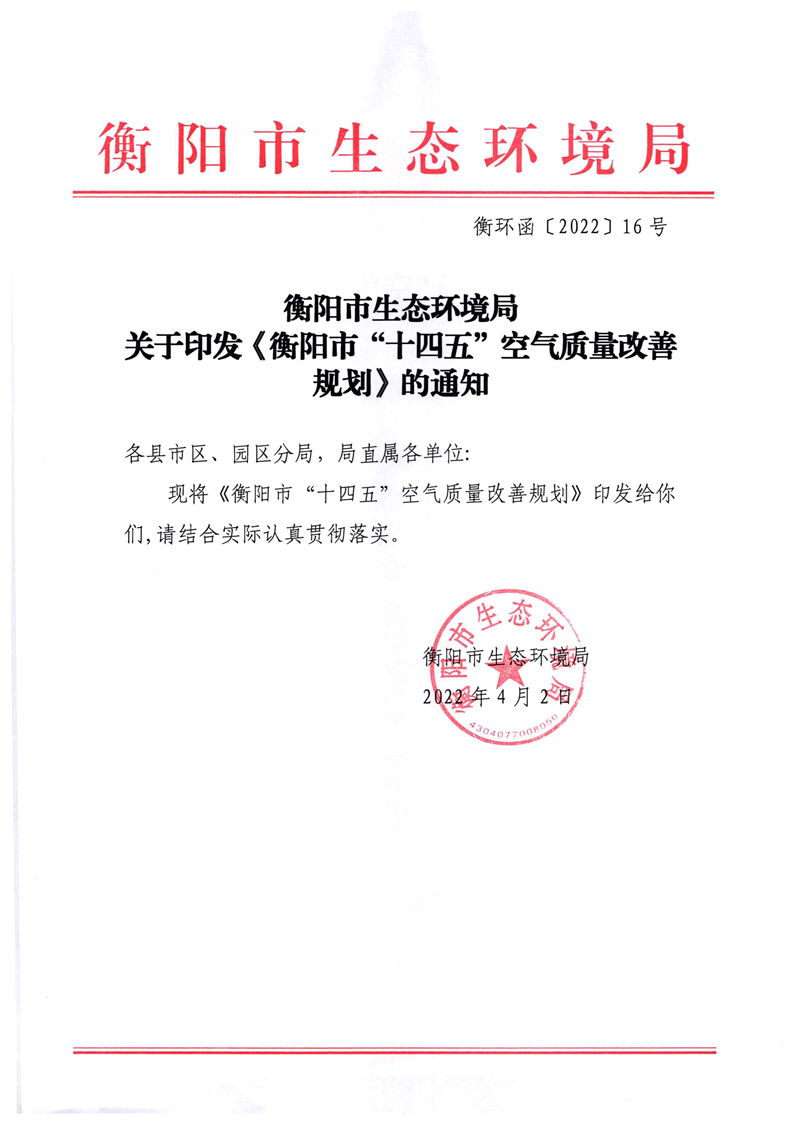 米兰体育棋牌APP官网关于印发《衡阳市“十四五”空气质量改善规划》的通知