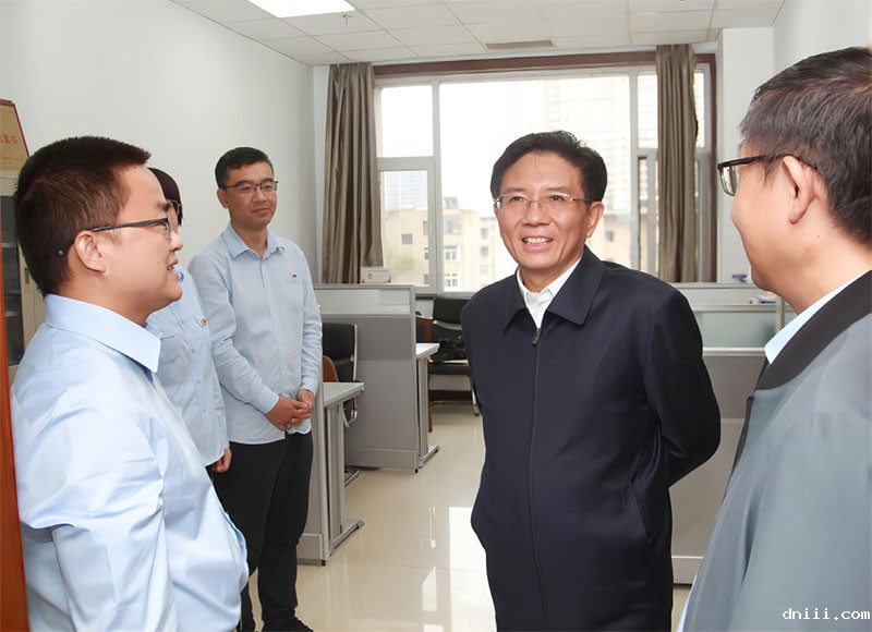 作者(右二)深入生态环境部京外派出机构调研,看望慰问西北核与辐射安全监督站干部职工,并与大家亲切交谈。