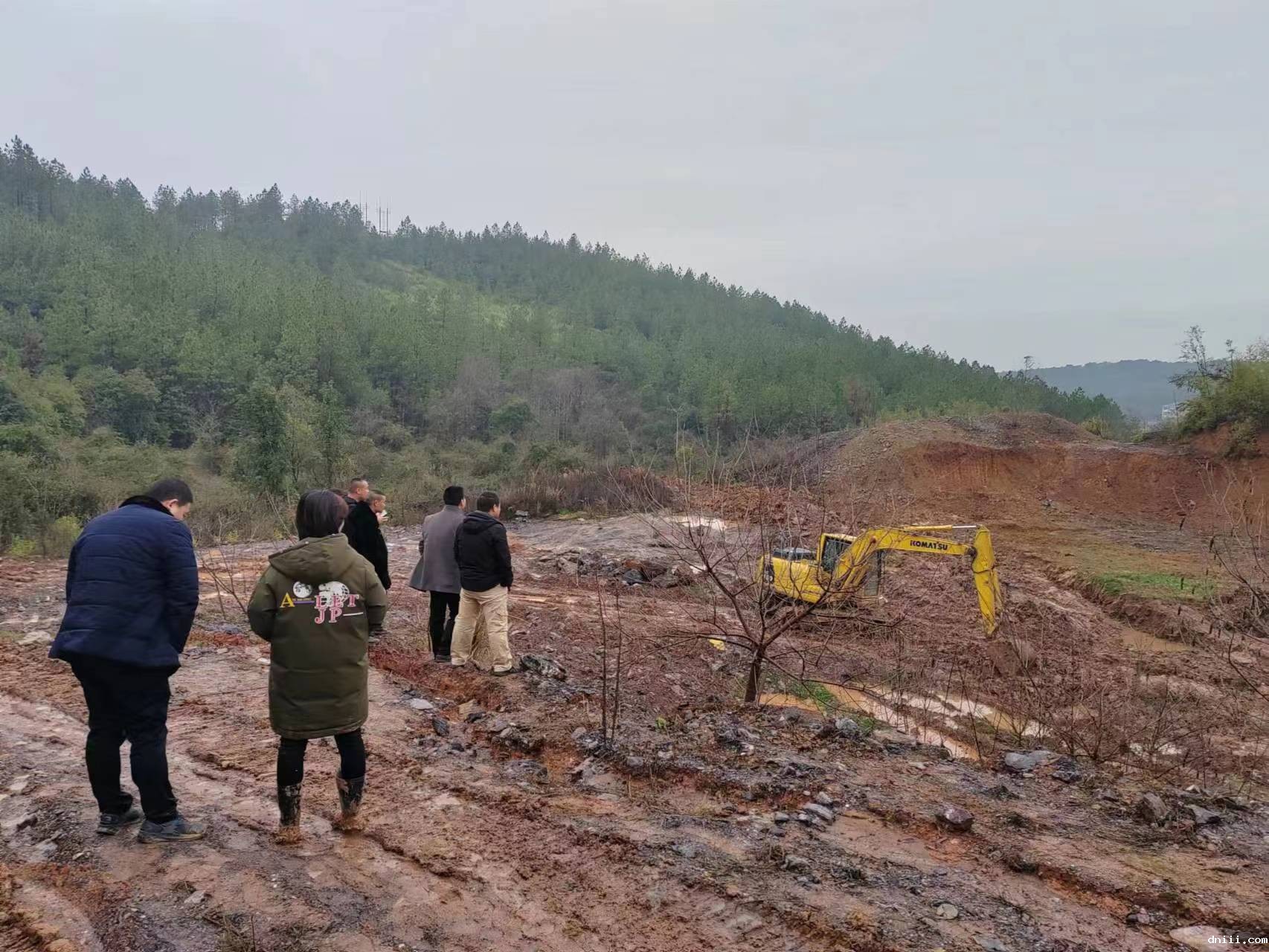 现场对猪粪倾倒点进行开挖