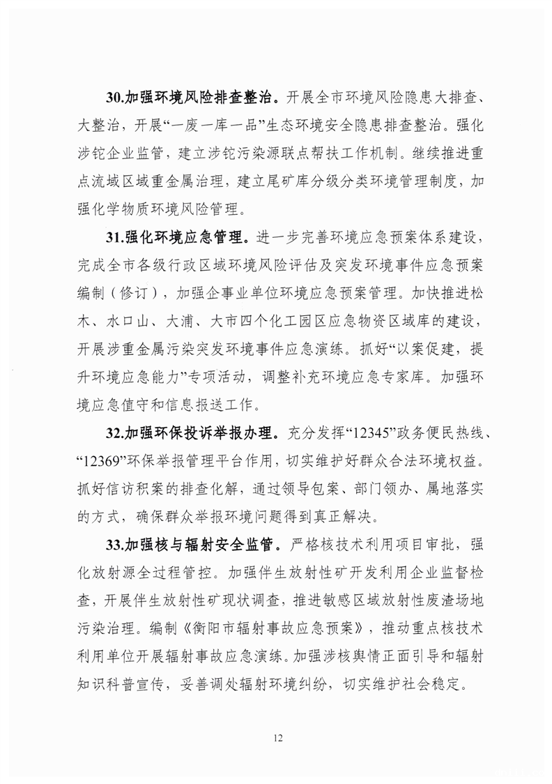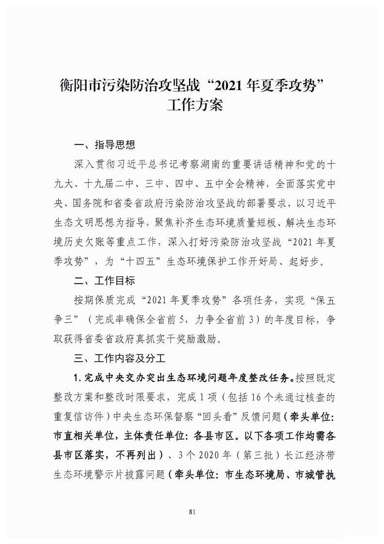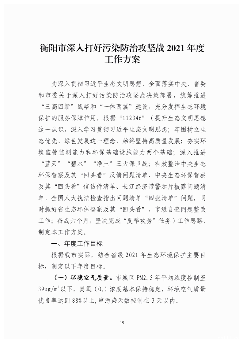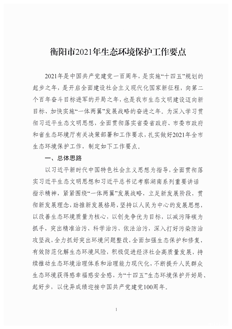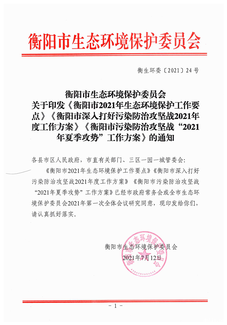 衡阳市生态环境保护委员会关于印发《衡阳市生态环境保护工作要点》等3个文件的通知
