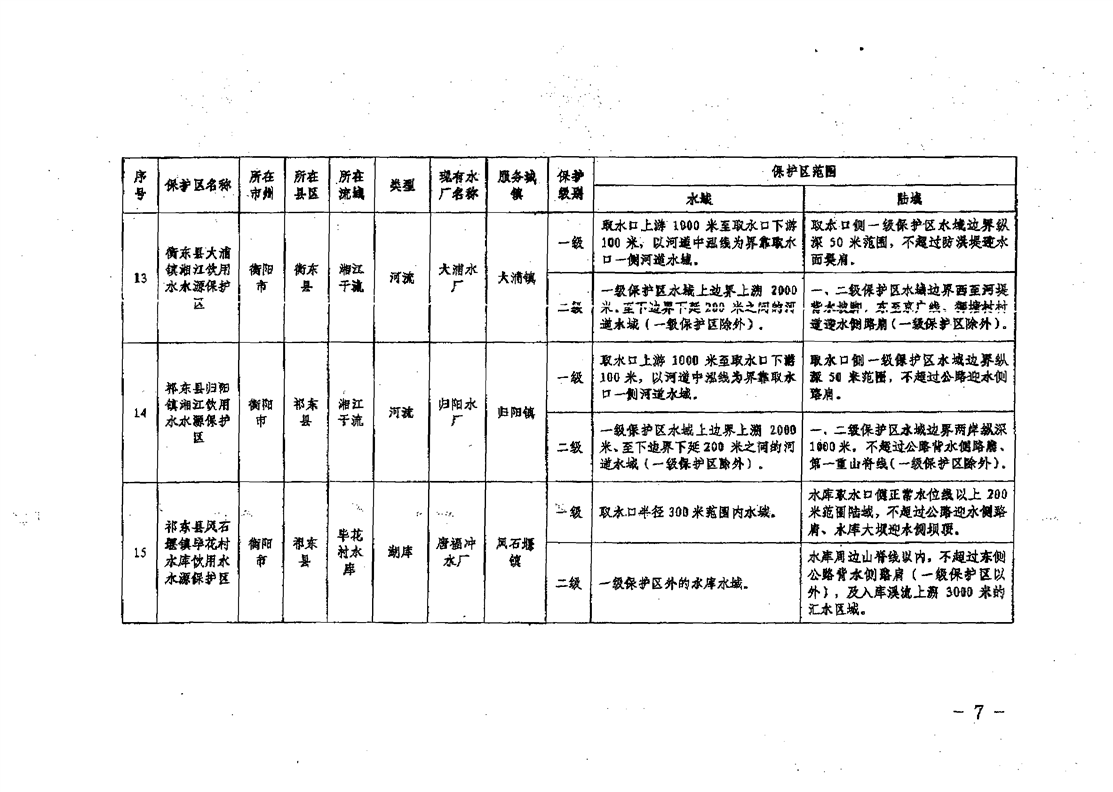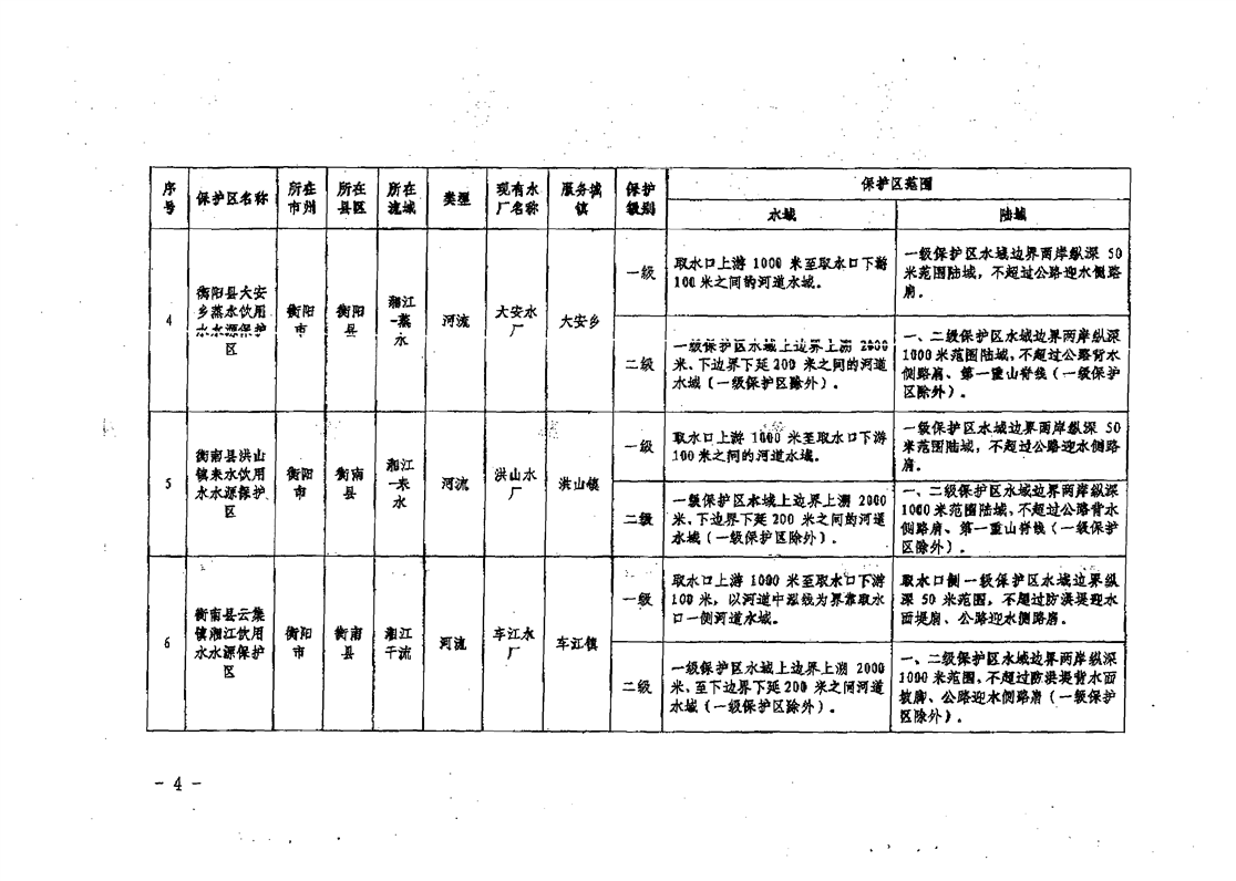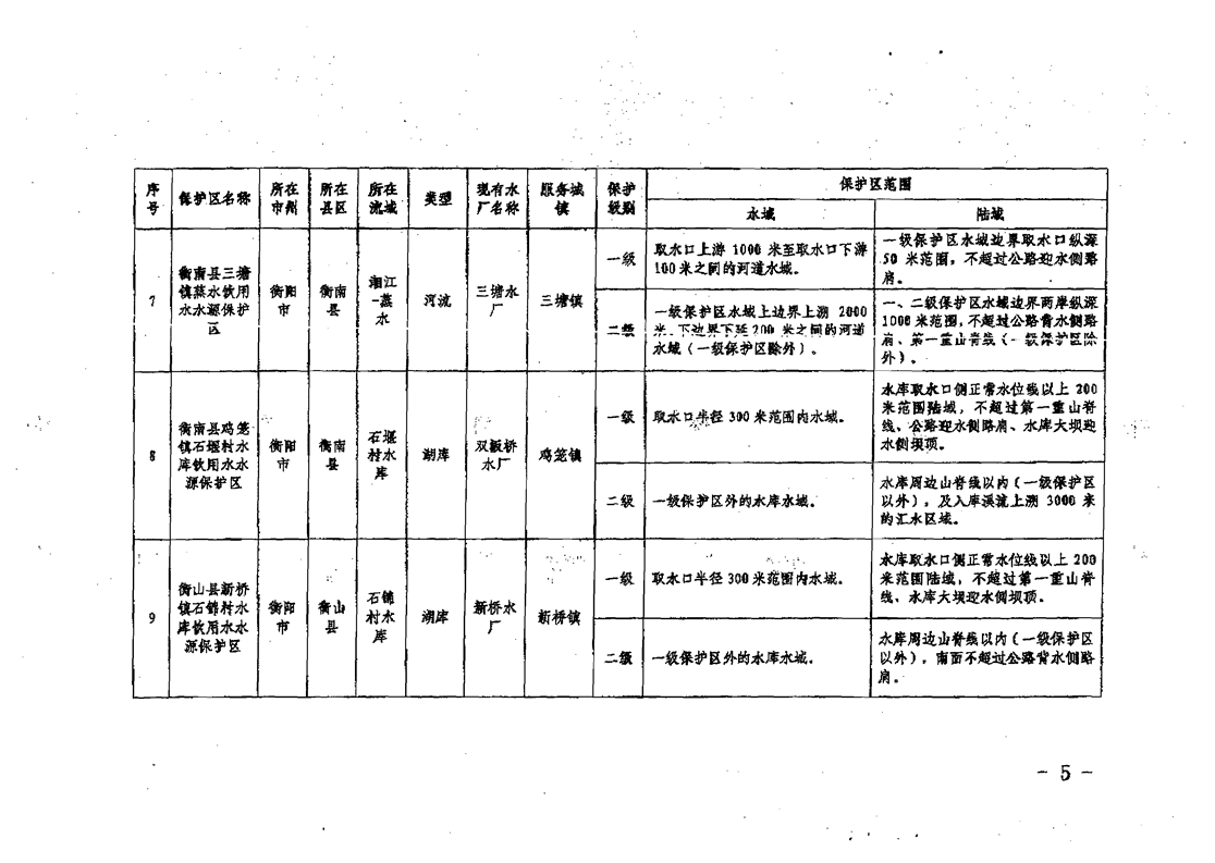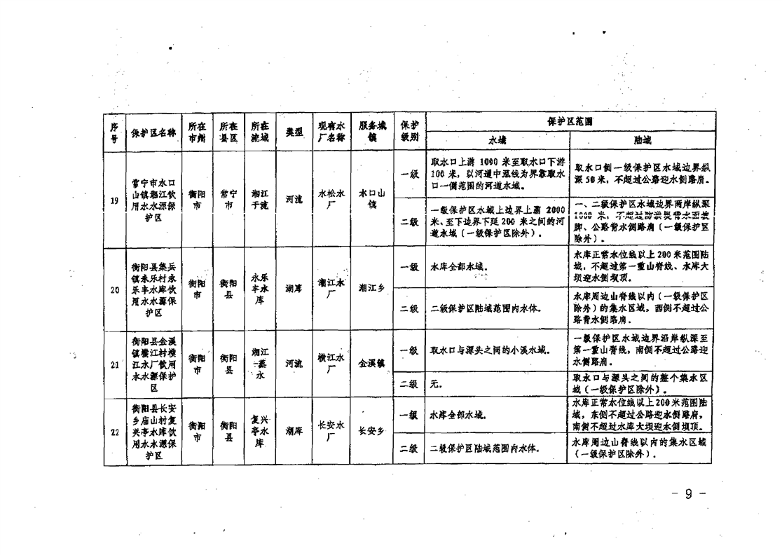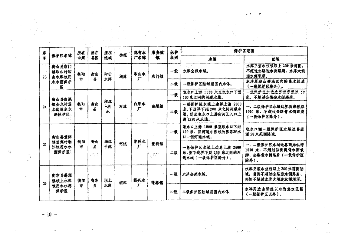 湖南省环保厅对衡阳市乡镇集中式饮用水水源保护区划分方案的批复(湘环函【2018】202号)